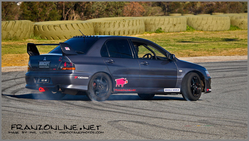 The Wheels World Evo X played chariot to Barbagallo Raceway during testing of the Hippo Creek/Allstar Garage Evo 9