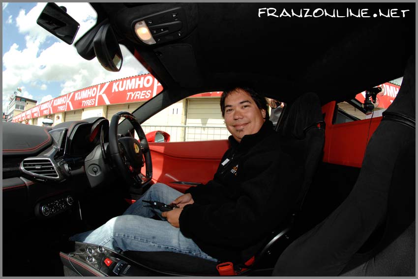 Sitting in the drivers seat of a Ferrari 458 Italia at Thruxton Motorsport Centre