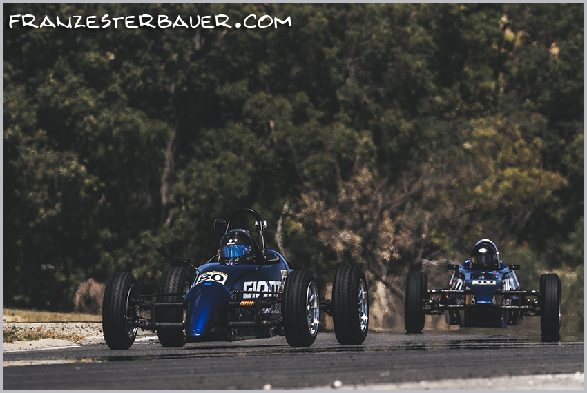 Turn 5 at Carco Raceway in Jacer Formula Vee with Jason Fowler in tow driving the Mako Formula Vee.