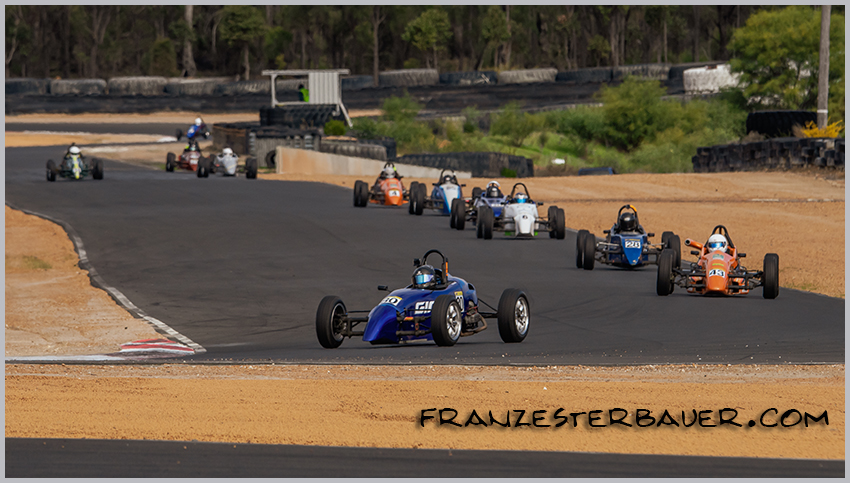 Leading the field through Turn 5 at Carco.com.au Raceway in the 2022 State Formula Vee Championship.